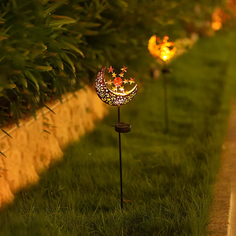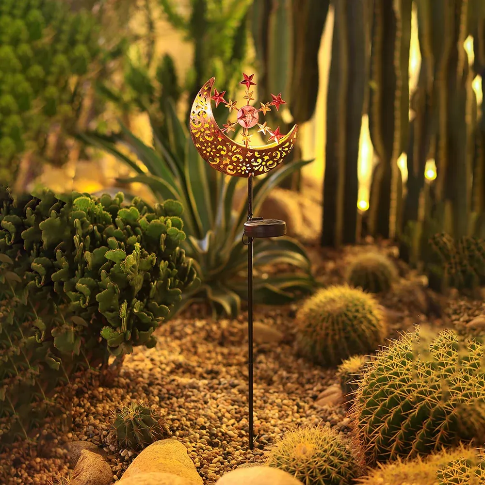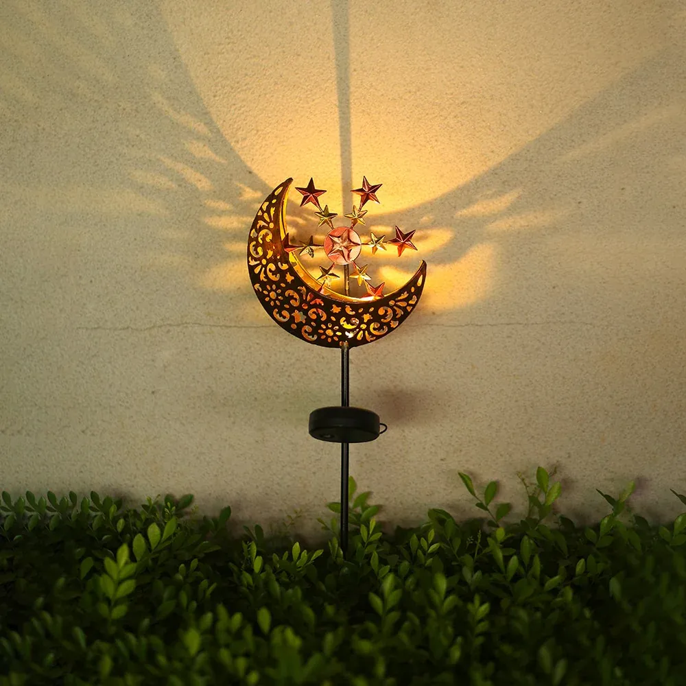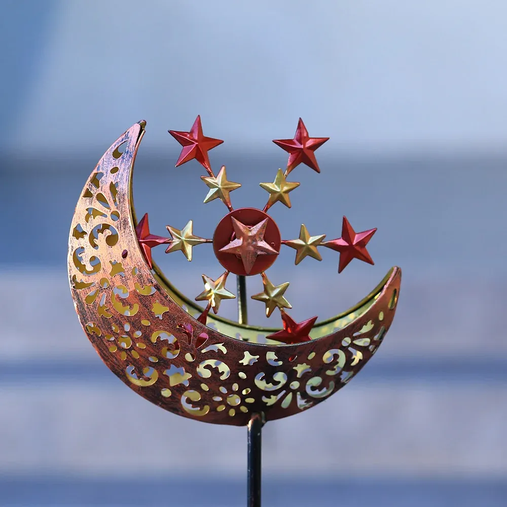 Lampe solaire extérieure sur piquet en acier en forme de lune avec un moulin en étoile idéale pour enjoliver votre jardin. Avec la puissance de la LED très économe, c’est l’éclairage parfait. Adoptez l’énergie verte pour un foyer plus écoresponsable.