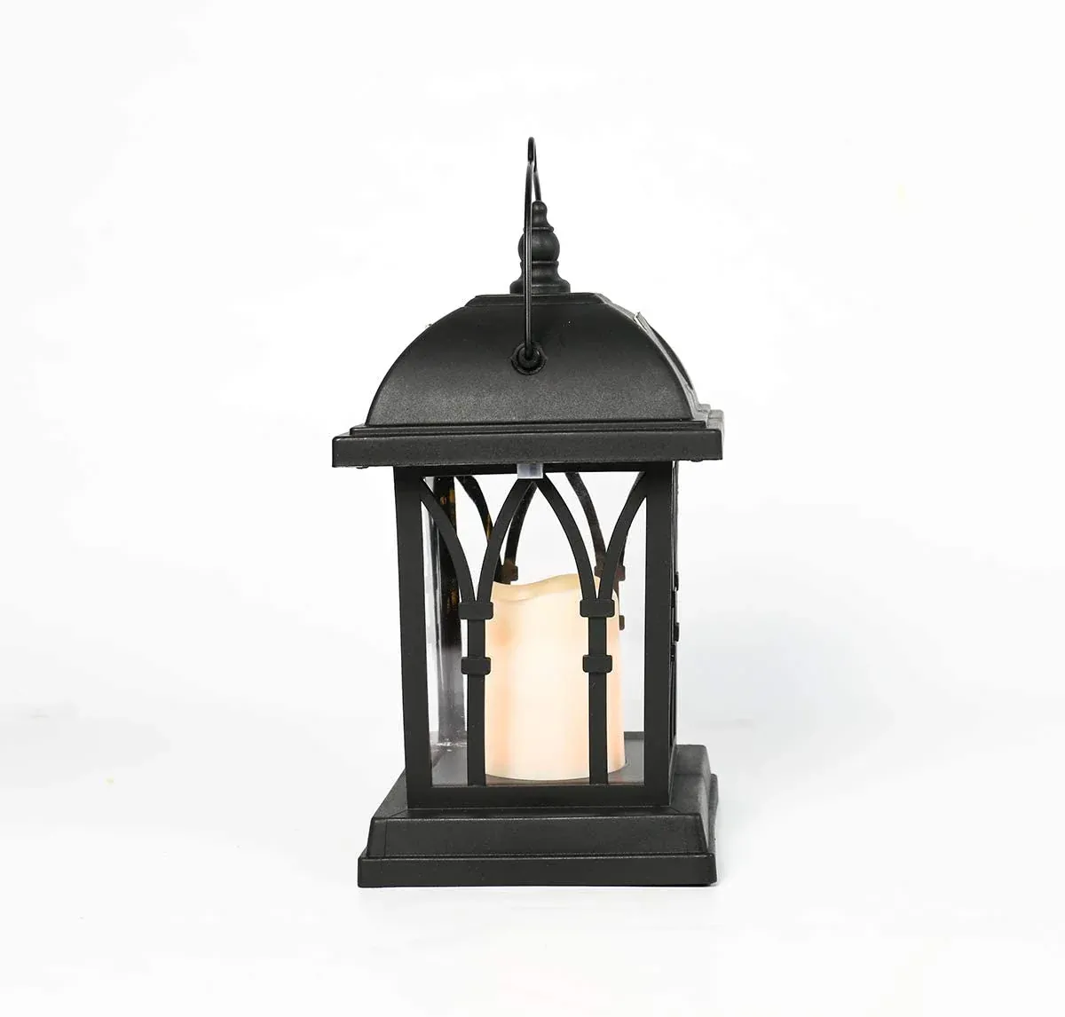 Lanternes solaires jardin décoratives noir mat avec bougie LED