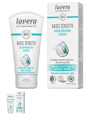 Lavera Basis Sensitive Moisturising Cream contains a combination of ingredients including Organic Aloe Vera to provide long lasting intense moisture keeping your skin hydrated, soft, supple as well as looking fresh and healthy. Organic Jojoba Oil quickly absorbs into the skin and protects from moisture loss leaving your skin feeling, silky soft and smooth.