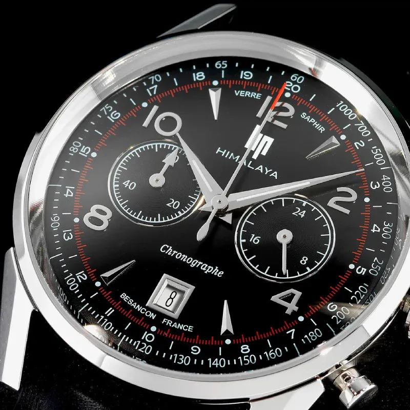 Découvrez la Montre LIP Homme Himalaya Chronographe Noire, une fusion parfaite entre sophistication et technologie. Équipé d’un verre saphir bombé et des fonctions tachymètre et télémètre, ce chronographe se démarque dans l’univers masculin, attirant l’attention des aventuriers exigeants et des amateurs de style. Issu de la collection emblématique Lip, ce modèle incarne l’héritage horloger depuis 1954, associant élégance intemporelle et résilience sportive, à l’image des alpinistes audacieux comme Maurice Herzog.