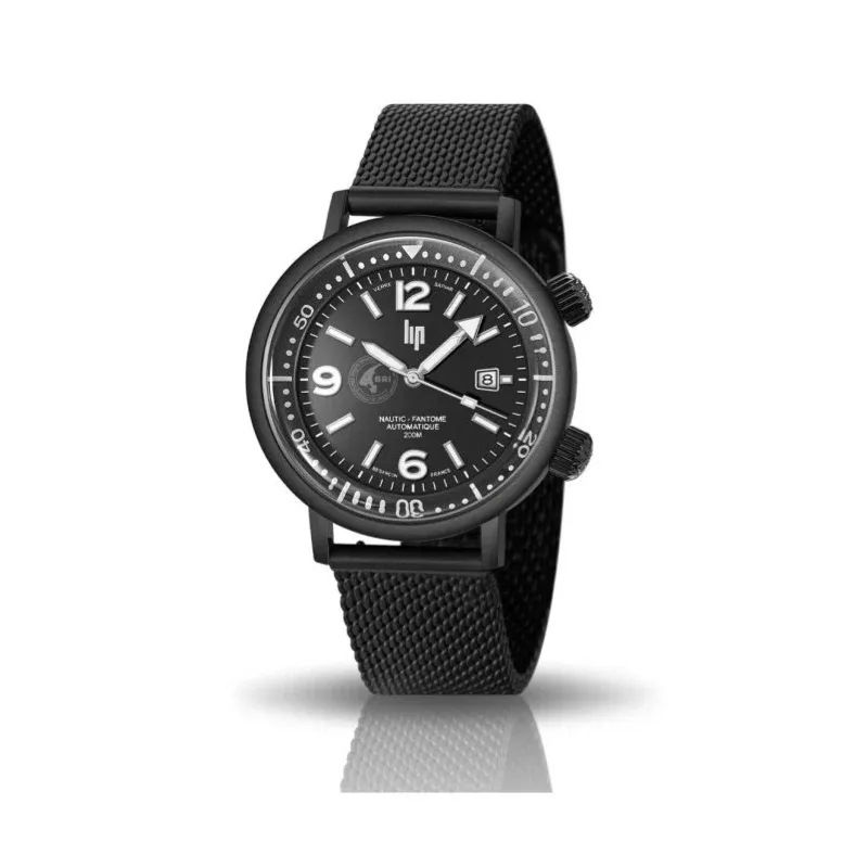 Affichez votre style distinctif avec la Montre LIP Homme Nautic Ski Fantôme Bri, une série limitée à 999 exemplaires. Fabriquée en France à Besançon, cette édition exclusive avec la BRI présente des modifications innovantes, dont un boîtier super-compressor et un bracelet milanais en acier 316L avec un traitement de surface noir mat, des couronnes surdimensionnées, des index et aiguilles lumineux la nuit, et un écusson BRI imprimé avec une encre « Fantôme ».