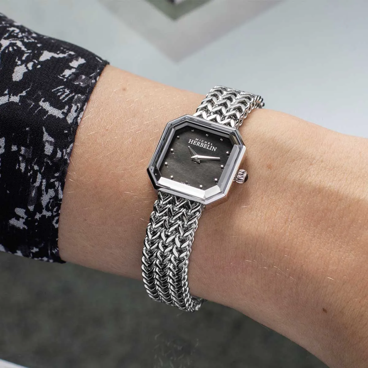 Tradition, élégance et qualité, cette montre Michel Herbelin Octogône pour femme pourra s’accorder avec toutes vos tenues. Parée d’un noir accompagné d’un bracelet argenté, avec son style rétro, elle rendra votre poignet très chic.