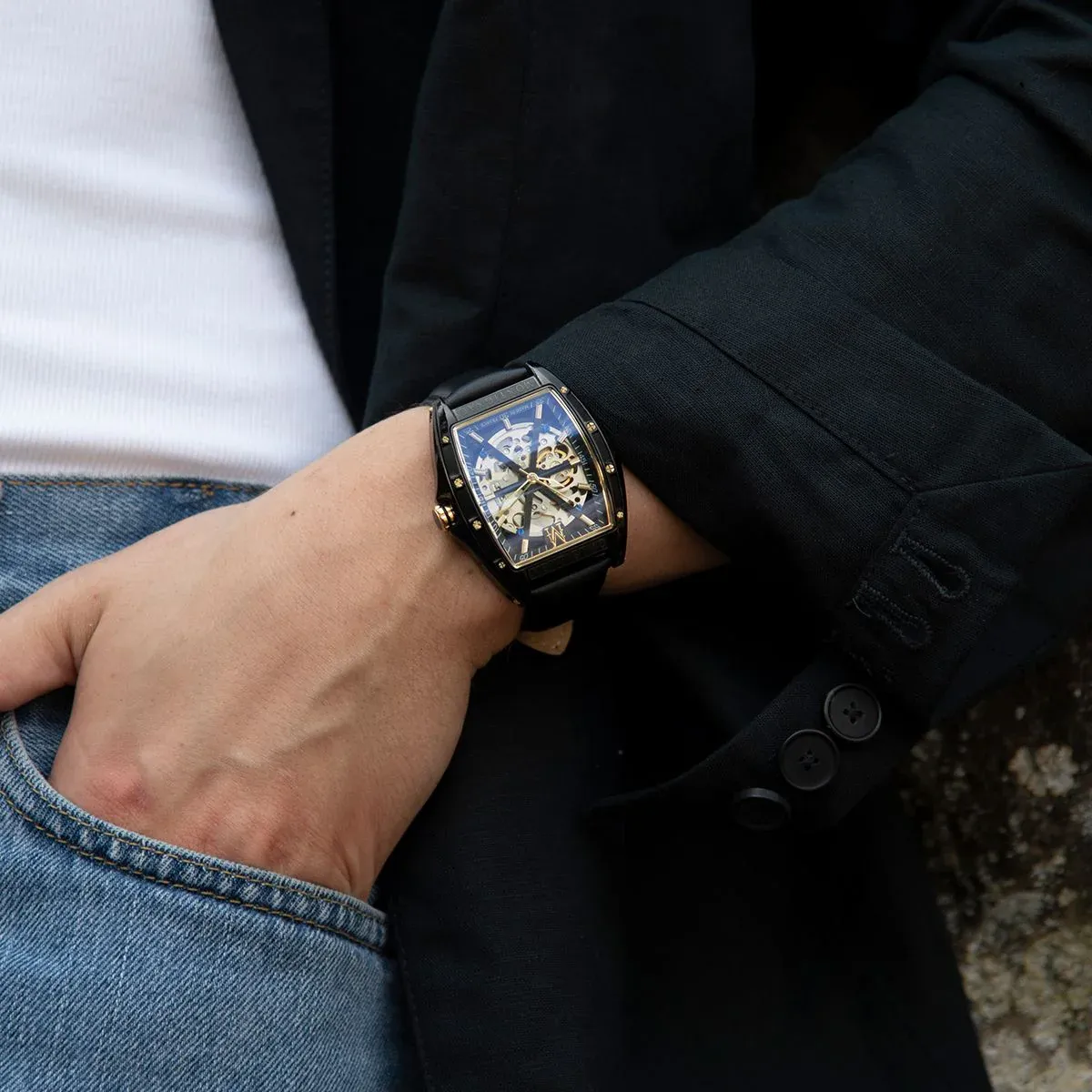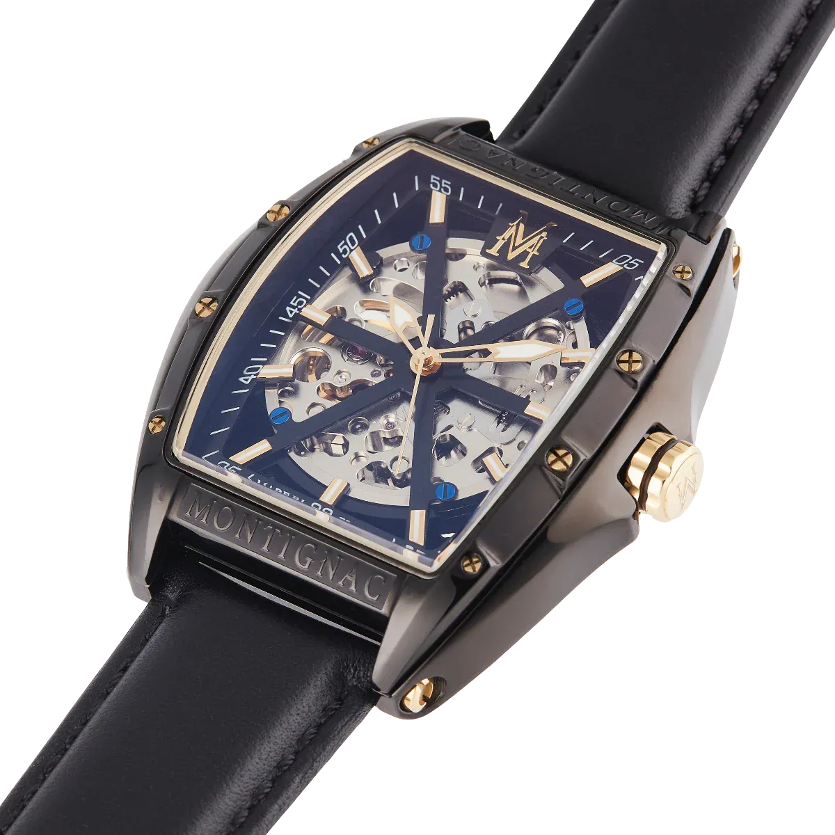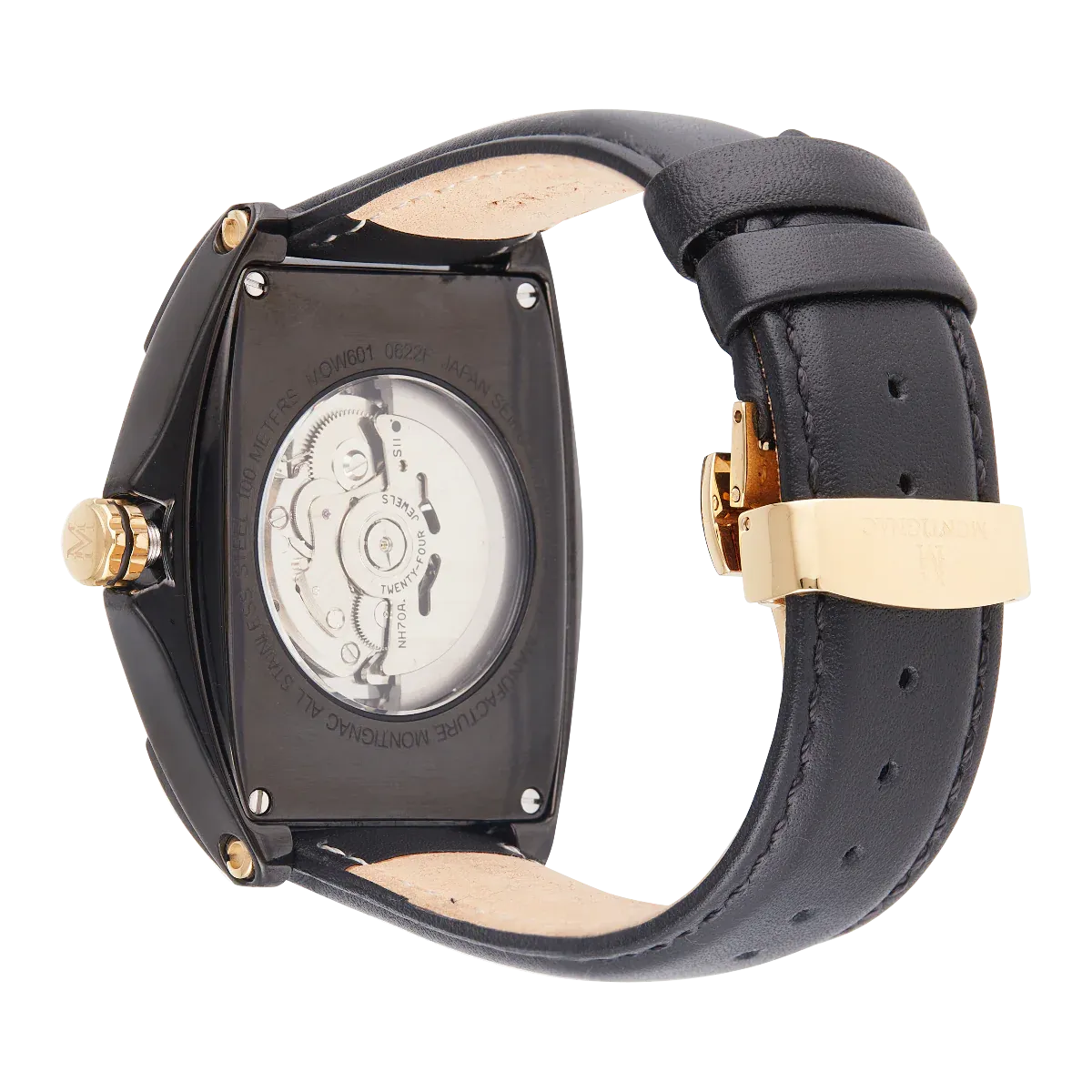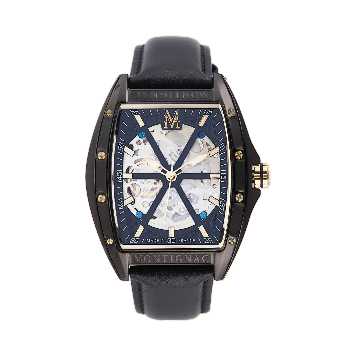 Chic et élégante, cette montre Montignac MOW601 tonneau automatique reflète parfaitement l’identité Montignac à travers son bracelet en cuir et son cadran tonneau noirs dévoilant toute la beauté et la finesse son mouvement automatique.