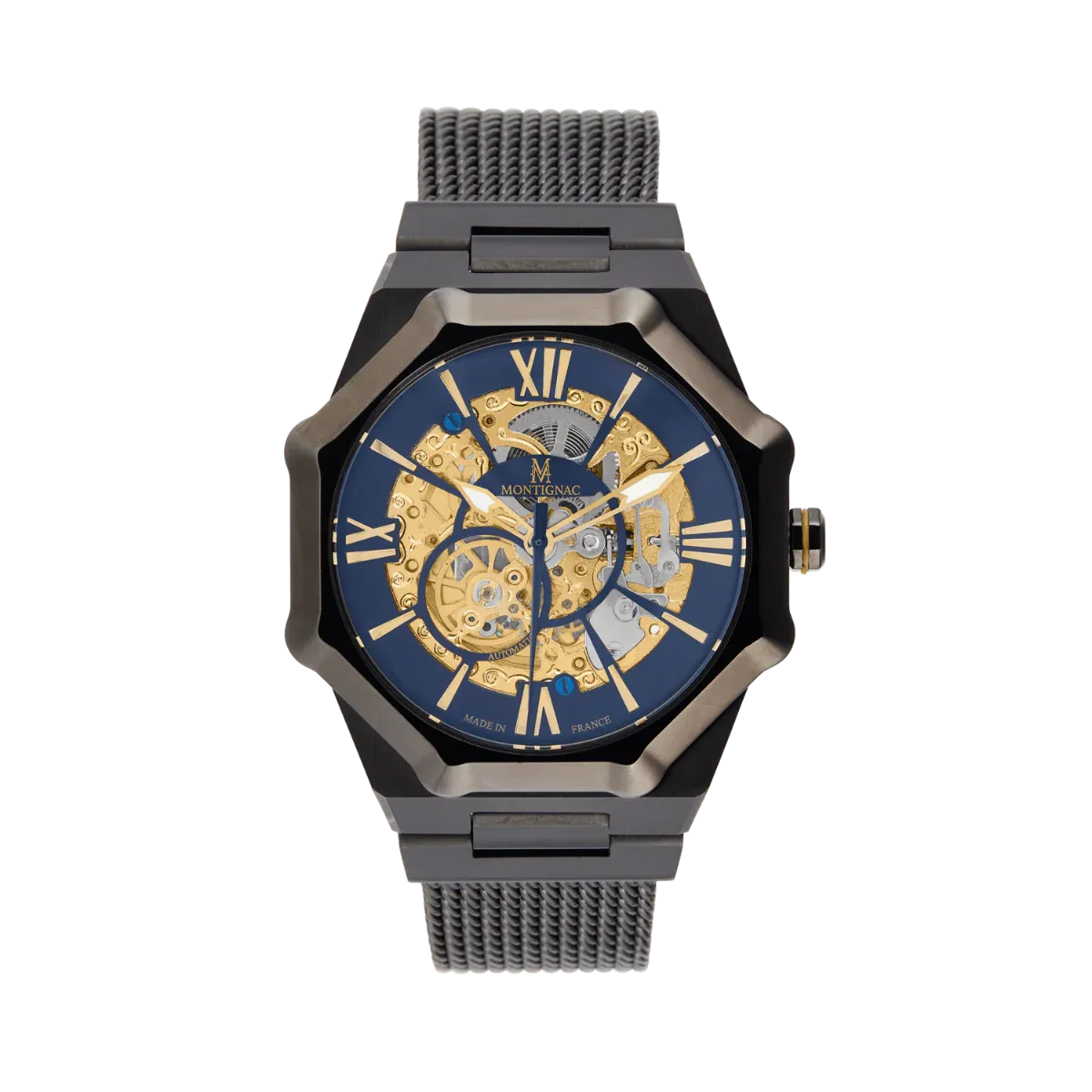 Cette montre homme Octagon Montignac MOW808 incarne avec élégance l’essence même de la marque Montignac. Son bracelet en maille milanese noir et son cadran bleu mettent en valeur la beauté et la délicatesse de son mouvement automatique, ajoutant une touche de chic à son design raffiné.