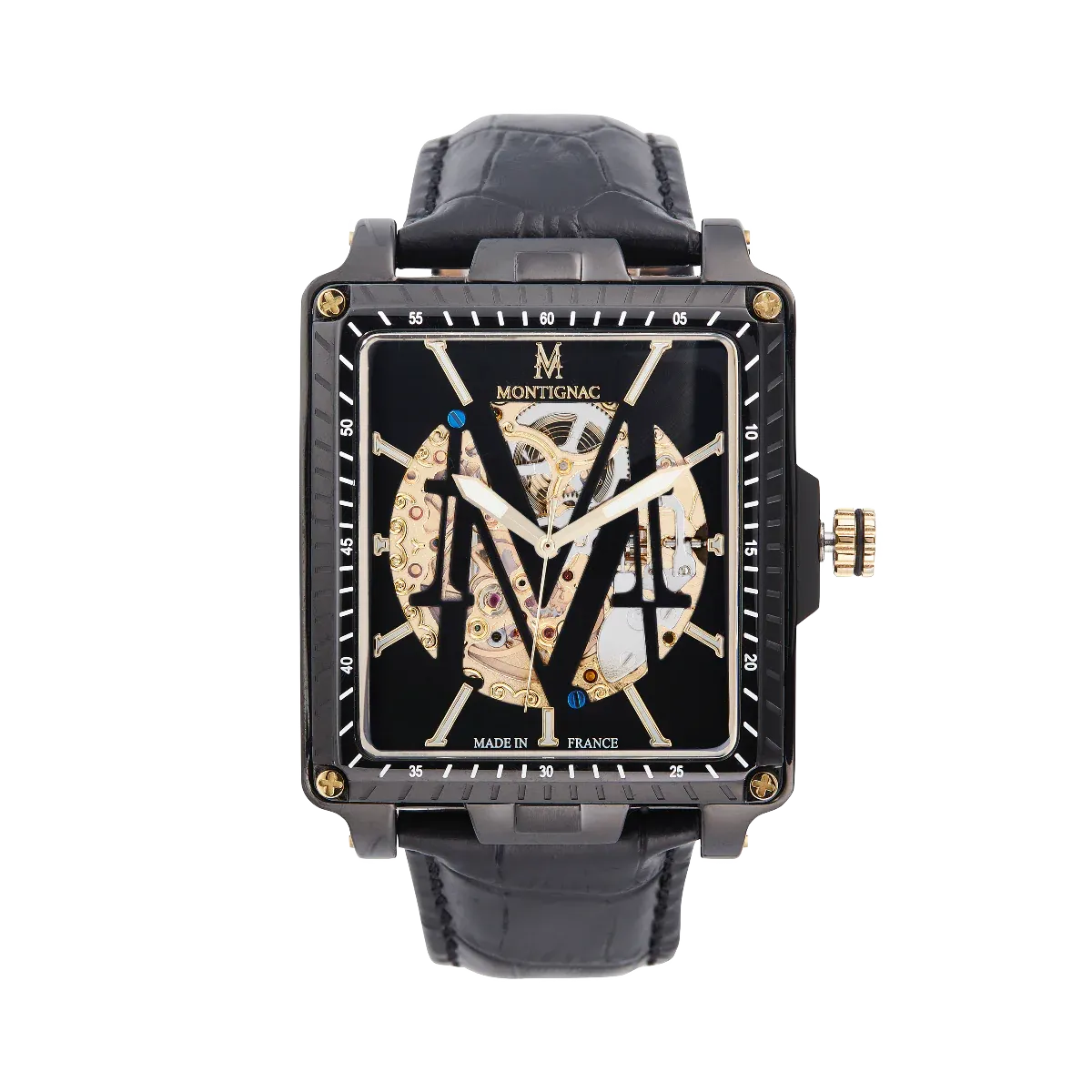 Chic et élégante, cette montre Square Montignac MOW708 reflète parfaitement l’identité Montignac à travers son bracelet en cuir noir et son cadran noir dévoilant toute la beauté et la finesse son mouvement automatique.