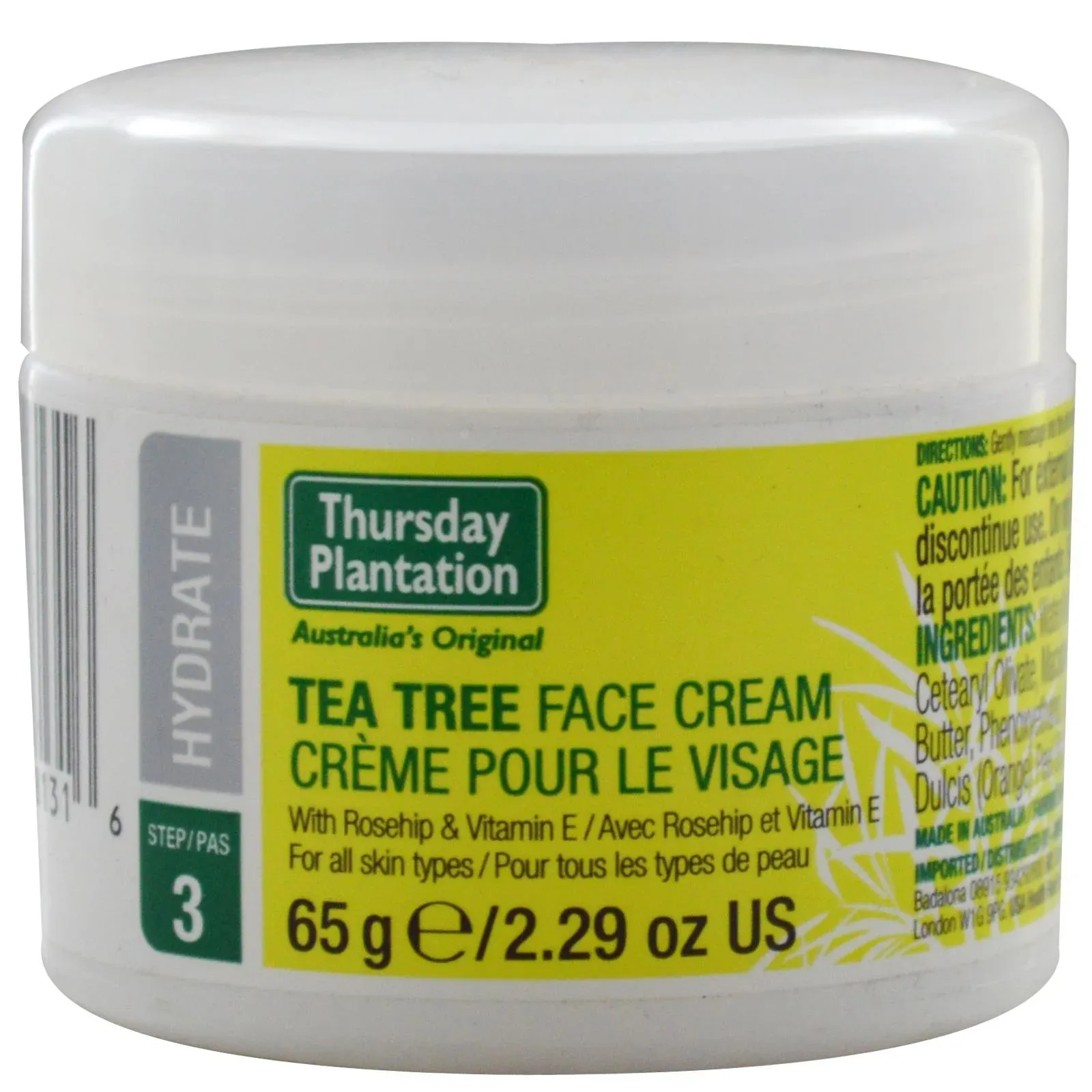 Water (aqua), caprylic/capric triglyceride, cetearyl alcohol, glycerin, glyceryl stearate, sorbitan olivate, cetearyl olivate, macadamia integrifolia seed oil, rosa canina fruit oil, tocopheryl acetate, butyrospermum parkii (shea) butter, phenoxyethanol, caprylyl glycol, melaleuca alternifolia (tea tree) leaf oil, xanthan gum, allantoin, citrus aurantium du