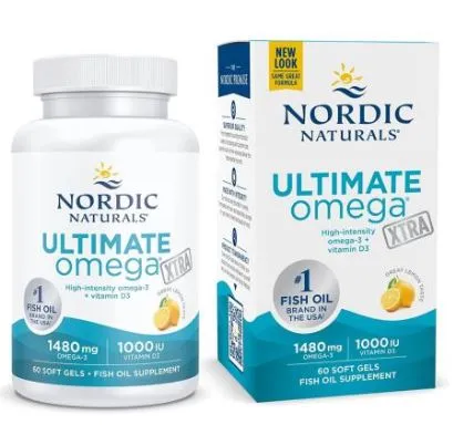 EPA-dominant Ultimate Omega Xtra combines pure, high-potency fish oil with 1000 IU vitamin D3 to provide powerful support for bones, joints, mood, and a healthy heart and brain.