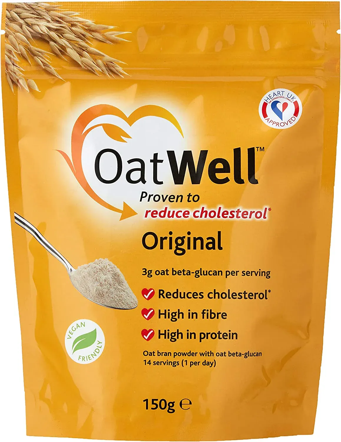 Oat bran powder with oat beta-glucan. Sprinkle 1 portion (11g or 2 heaped teaspoons) of our OatWell™ Original oat bran powder to your breakfast or visit our recipes here for other tasty ways to add OatWell™ to your diet. 11g contains the full daily amount of oat beta-glucan (3g).