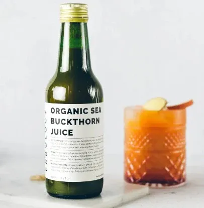 Sea buckthorn is a berry which typically grows in coastal regions, and it is chock full of health-boosting nutrients. Vitamin C supports your immune system, while omega-7 fatty acids help with cardiovascular health. Beta-carotene, the pigment that gives our Sea Buckthorn Juice its intense orange colour, also helps look after your eye health.