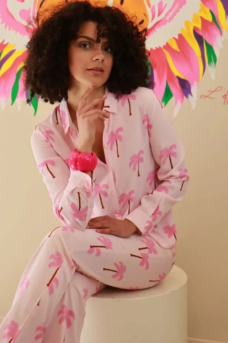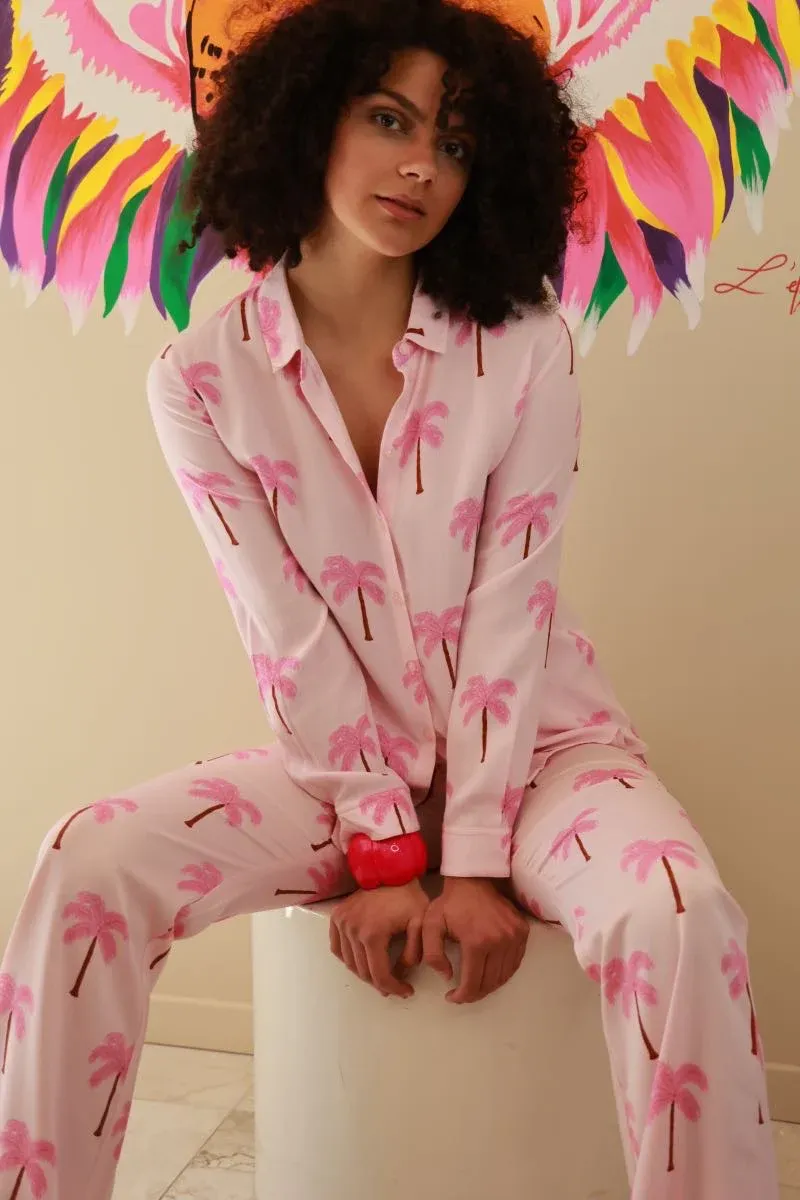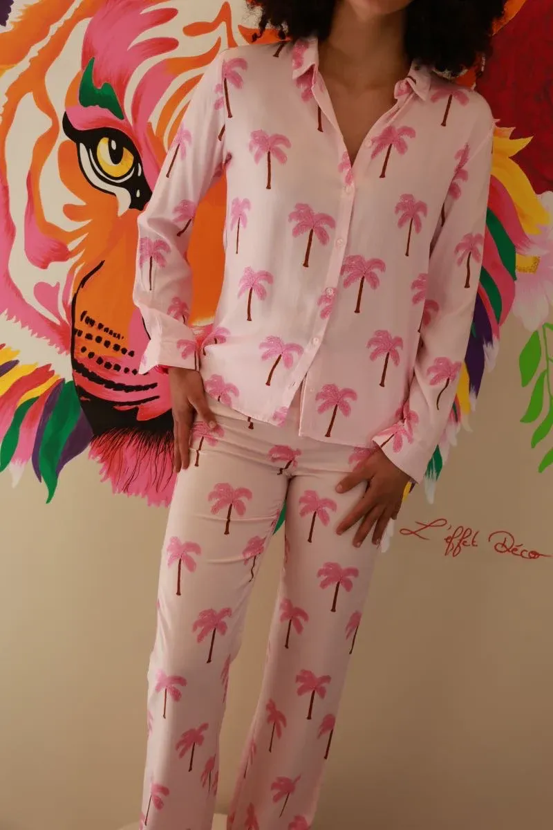 • Un imprimé palmiers roses, pour une vibe tropicale irrésistible.