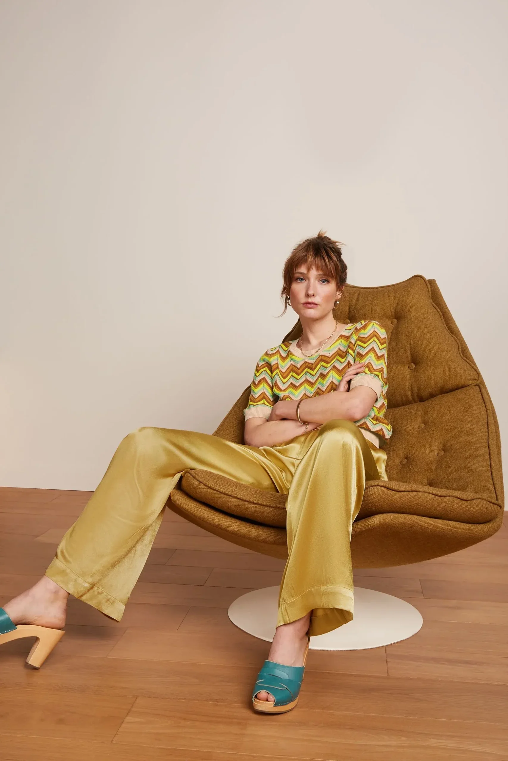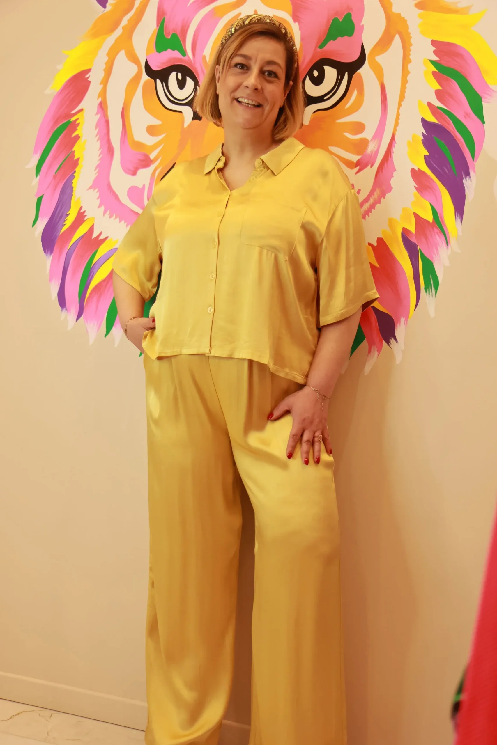 Ajoutez une touche de raffinement à votre dressing avec le pantalon Irma Star Satin King Louie. Sa coupe ample et fluide sublimée par un satin brillant et soyeux en fait une pièce à la fois chic et ultra-confortable. Sa taille haute avec élastique dans le dos assure un ajustement parfait et un maintien optimal, parfait pour un look élégant sans contrainte.