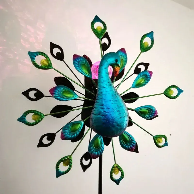 - Éclairage Solaire : Moulin à vent paon avec lumière solaire
