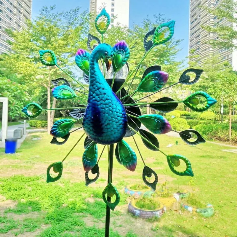 Polyvalence : Parfaitement adapté pour les villas, les cours extérieures et les pelouses, ce moulin à vent en forme de paon apporte une élégance intemporelle à n’importe quel environnement.