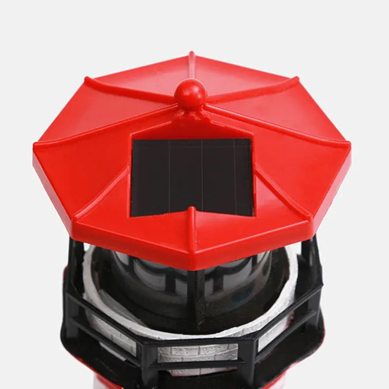 Doté d’un panneau solaire intégré, ce phare convertit la lumière du soleil en énergie électrique pendant la journée, stockée dans une batterie rechargeable. Lorsque la nuit tombe, le phare s’allume automatiquement, guidant votre chemin dans l’obscurité. De plus, la tasse de lumière commence à tourner en conséquence, ajoutant un élément de mouvement captivant à votre décor extérieur.
