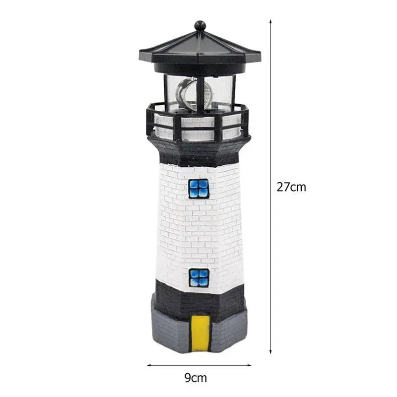 Doté d’un panneau solaire intégré, ce phare convertit la lumière du soleil en énergie électrique pendant la journée, stockée dans une batterie rechargeable. Lorsque la nuit tombe, le phare s’allume automatiquement, guidant votre chemin dans l’obscurité. De plus, la tasse de lumière commence à tourner en conséquence, ajoutant un élément de mouvement captivant à votre décor extérieur.