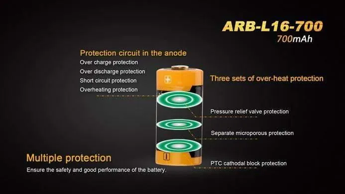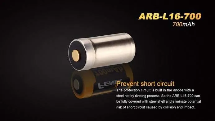 Fenix ARB-L16-700 est une batterie rechargeable de 700mAh avec circuit de protection dans l’anode pour éviter un court-circuit.