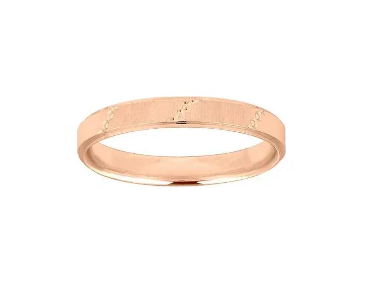 Dans la simplicité, cette alliance sort tout de même de l’ordinaire grâce à sa couleur or rose. Légèrement striée, cela fait tout son charme.