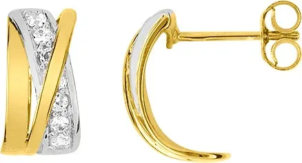Optez pour ces boucles d’oreilles style créoles, avec un design très détaillé en or jaune et oxydes de zirconium entourés de rhodium, métal très précieux.