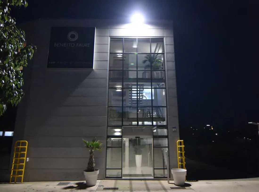Projecteur LED Beneito Faure Polaris adapté pour l’extérieur, en aluminium, finition noire.