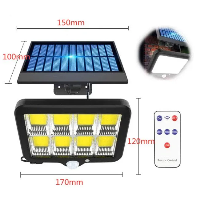 Projecteur solaire de 160 LED de type COB avec télécommande et détecteur de mouvements, c’est la lampe murale extérieure qu’il vous faut pour éclairer votre jardin. Avec la puissance des LED très économe, c’est l’éclairage parfait. Adoptez l’énergie verte pour une bâtisse plus écoresponsable.