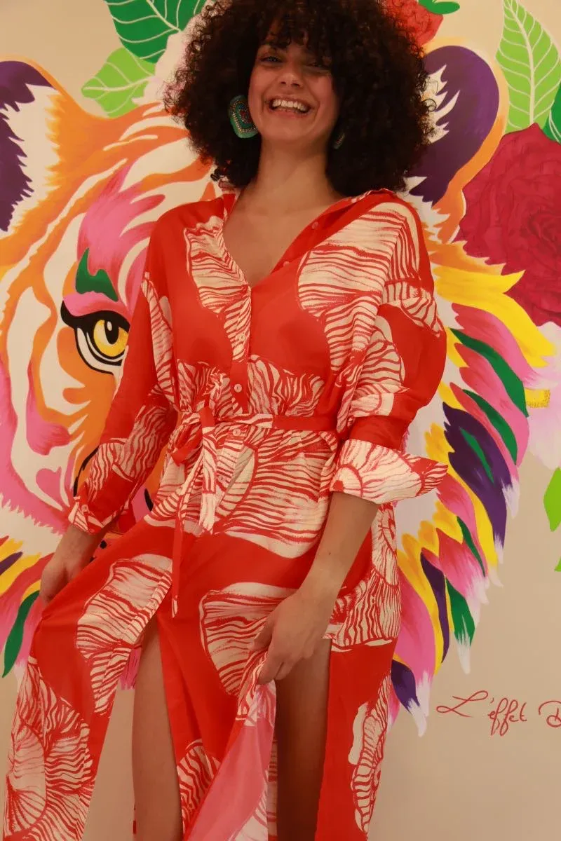 Coup de cœur immédiat pour cette robe longue fluide signée Fabienne Chapot ! Avec son imprimé coquillage graphique en rouge tropical et blanc cassé, la robe Denis joue la carte de la sensualité chic sans jamais en faire trop.