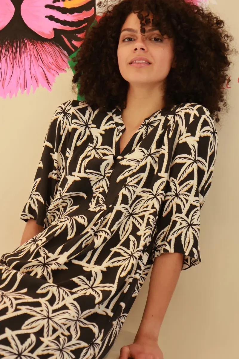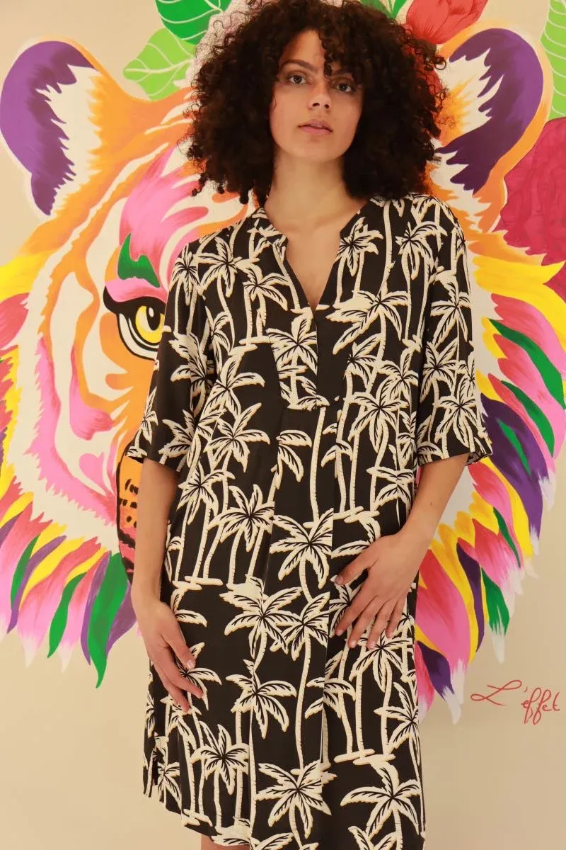 La robe cool & chic qu’on enfile sans réfléchir, mais qui fait tout son effet. Avec son imprimé palmiers crème sur fond noir, cette pépite signée Scotch & Soda t’embarque direct pour un look tropical-urbain, sans quitter la campagne (ou presque).