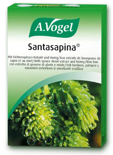 Santasapina Lozenges contain extracts from the shoot of spruce and honey.
