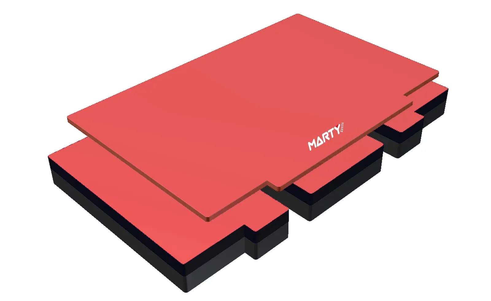 Blocs de mousse houssés individuellement et reliés entre eux par des boucles et sangles velcro recouvert d’un tapis de recouvrement antipointes 10cm