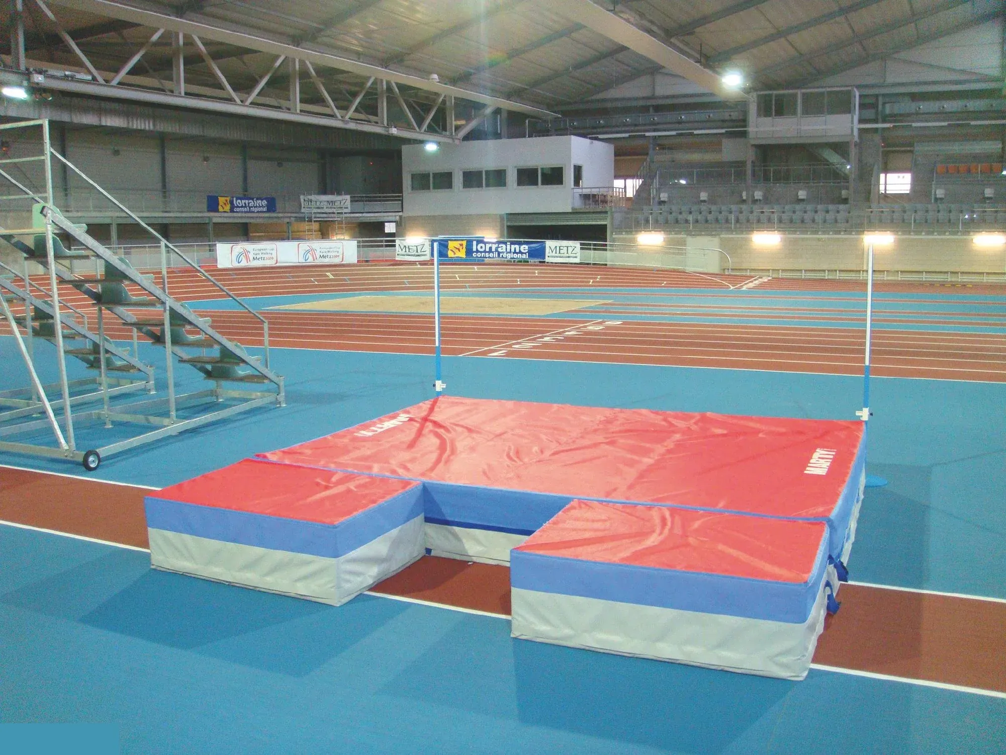 Aire de réception mixte 4m00 x 3m00 x 0m50 composée de 3 blocs houssés et reliés + 2 avancées pour perche 1m50 x 1m00