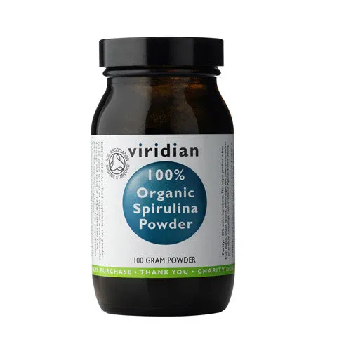 Spirulina (Arthrospira platensis) is a simple, one celled form of algae that thrives in warm, alkaline fresh-water. The name ‘Spirulina’ is derived from the latin word for ‘helix’ or ‘spiral’, denoting the physical configuration of the organism when it forms swirling, microscopic strands. Spirulina is 69 percent complete protein, with all the essential amino acids in perfect balance. In comparison beef is only 22 percent protein. In addition, Spirulina is one of the few plant sources of vitamin B12, usually found only in animal tissues.Spirulina also provides high concentrations of many other nutrients – amino acids, chelated minerals,pigments, rhamnose sugars (complex natural plant sugars), trace elements, enzymes (SOD), and essential fatty acids (both linoleic and linolenic acid) – that are all in an easily assimilable form. Spirulina is one of the blue-green algae due to the presence of both chlorophyll (green) and phycocyanin (blue) pigments in its cellular structure. Spirulina lacks cellulose cell walls, unlike other blue/green algae, therefore it can be easily digested. Viridian’s Spirulina is certified organic by the following organisations: Soil Association, ECOcert, Naturland, USDA NOP and IFOAM. Also available as an excipient-free 100% active tablet.