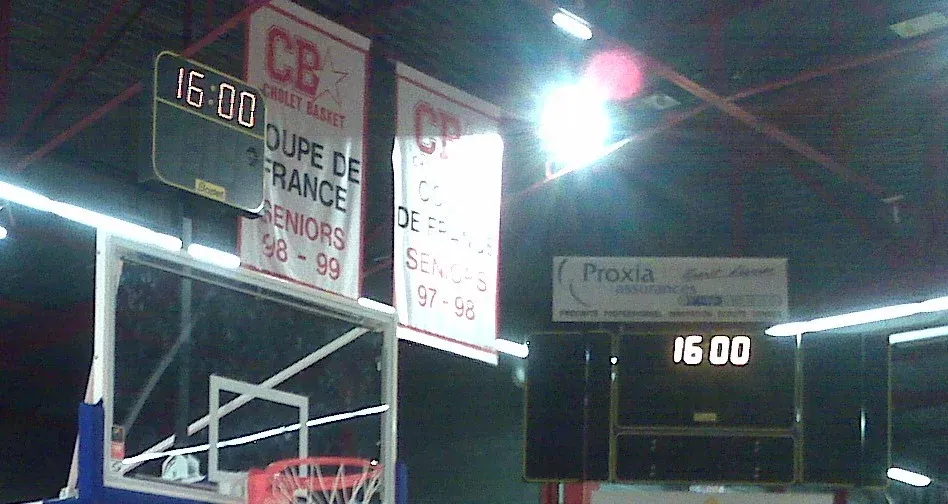 Pour fixation des plots 24’ sur buts basket relevables en charpente.