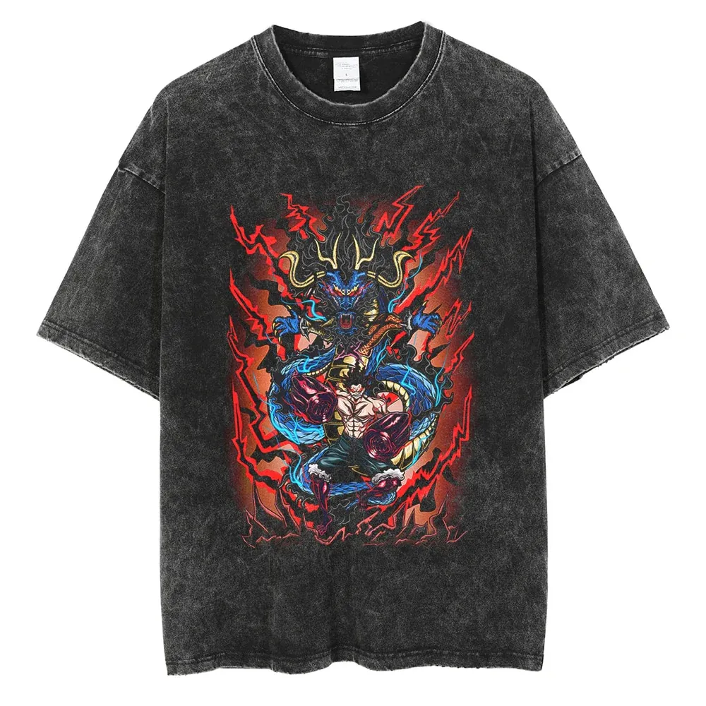 Cette pièce unique capture la tension et l’intensité de la bataille entre Luffy et Kaido. Que vous soyez du côté de l’équipage du Chapeau de Paille ou que vous admiriez la puissance de Kaido, ce t-shirt est un incontournable pour tout fan de One Piece.