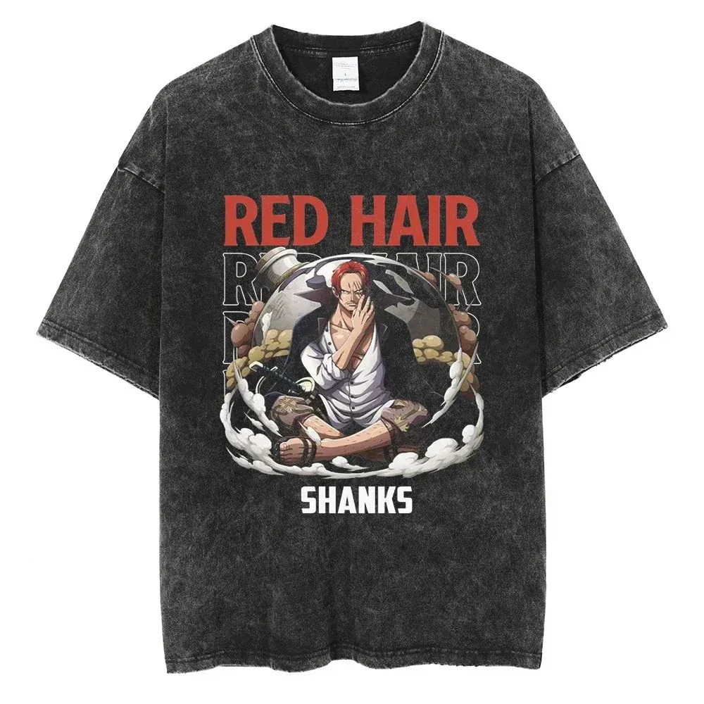 Ce T-Shirt Vintage One Piece est un hommage au légendaire pirate Shanks, un personnage clé connu pour son charisme, sa force et son influence profonde dans l’univers de One Piece. Le design met en valeur l’aura puissante et le style inimitable de Shanks.