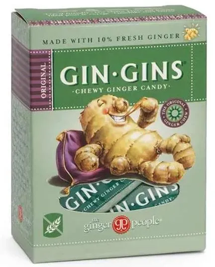North America’s Nr. 1 selling ginger candy and winner of Fiery Food Association’s Scovie Award for « Best Candy, » our Gin Gins Original Chewy Ginger Candies are natural, stimulating and delicious. Given ginger’s queasy-quelling properties, Gin Gins Original Chewy Candies are great to fight off nausea while flying boating or going on a bumpy road trip, and come in a handy pocket-sized Travel Pack. Surprisingly and satisfyingly spicy. The only candy that bites you back!