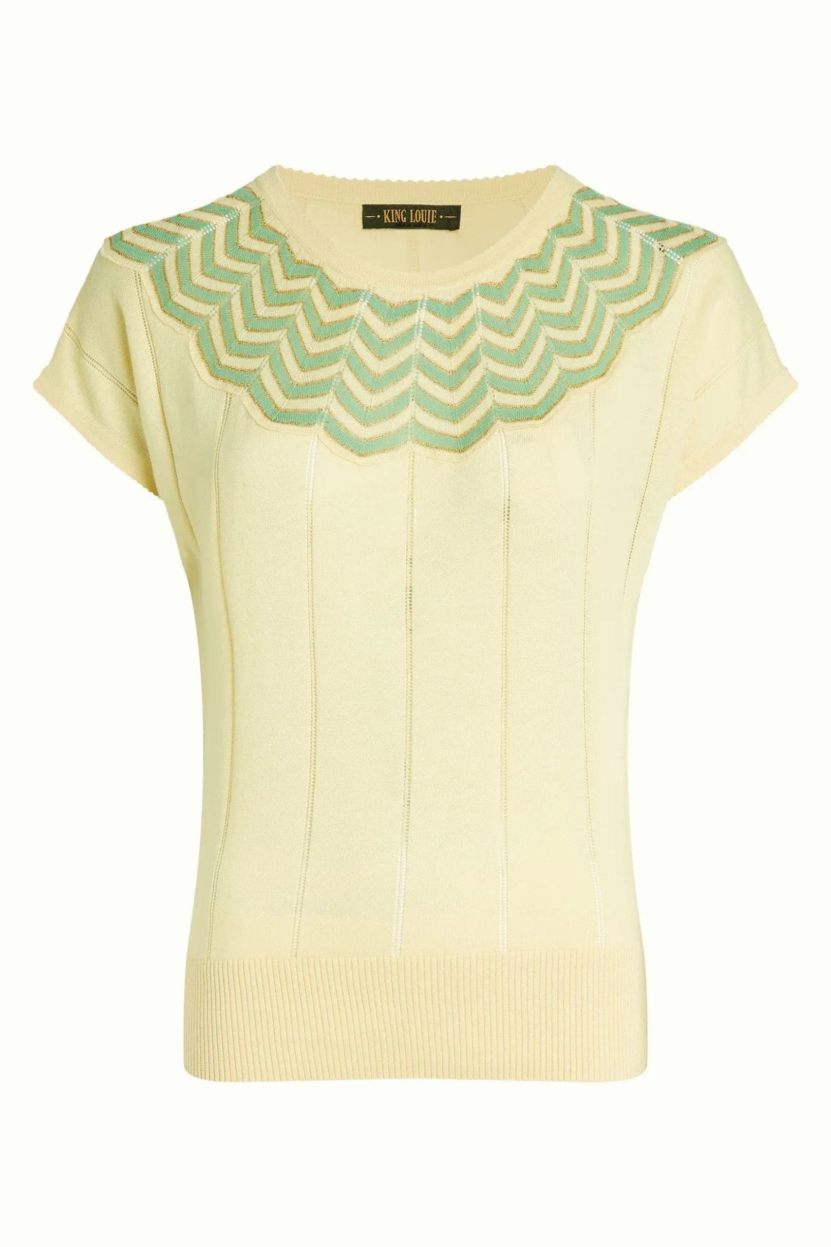 Ajoutez une touche d’originalité à votre garde-robe avec ce top tricoté au design raffiné. Son empiècement à motif zigzag lui apporte un style unique et sophistiqué, parfait pour une allure élégante et décontractée à la fois.