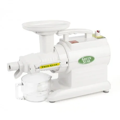 The award winning Tribest Green Star 2000 Juicer uses twin gears to crush the produce and expel the juice. These twin gears are made of Stainless Steel with plastic ends and are patented as they contain magnets and bioceramic materials in them. These magnets and bioceramic materials are said to extract higher levels of minerals out of the produce and also give fresher juice that’s enzymes and vitamins have a longer shelf life.
