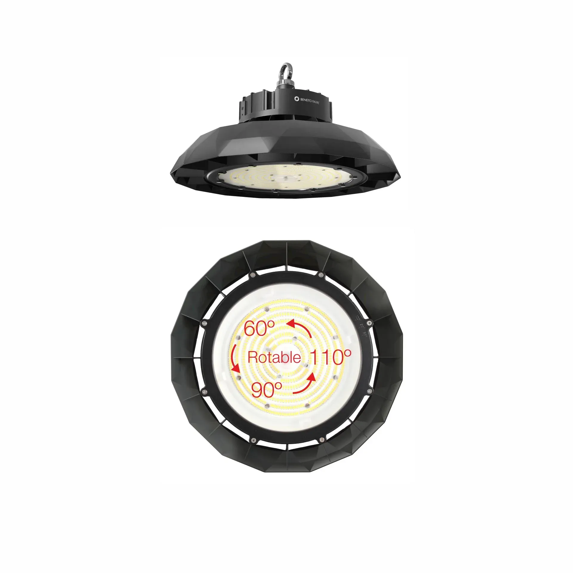 Ufo Lens Switch est une hotte LED d’extérieur (IP65) conçue pour les espaces industriels, les ateliers et les entrepôts de moyenne ou grande hauteur. Son design compact et ses accessoires facilitent son installation en suspension ou en saillie.