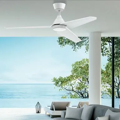 Ventilateur de plafond avec lumière ACB Bora blanc à 3 pâles. Prévu pour la ventilation de pièces de 13 m² à 18m² ou à installer sur une terrasse extérieure (IP44)