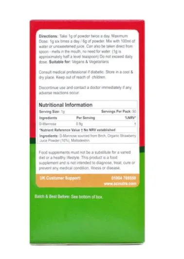 - Great tasting strawberry juice powder blended with birch D-Mannose can be enjoyed straight off the spoon or mixed with water.