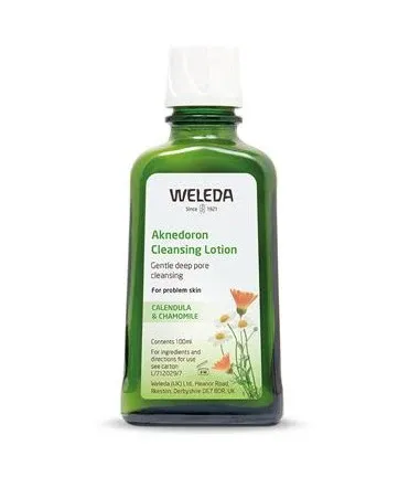 Weleda Aknedoron Cleansing Lotion is a daily cleanser which freshens the skin. Carefully selected natural ingredients include refreshing essential oils of orange, grapefruit, lavender and rosemary; soothing calendula and organic chamomile and sunflower and olive oil as a base for the cleanser. This special combination cleanses without stripping the natural oily layer, which protects the skin from environmental aggressors, gently restoring the skin’s natural balance in preparation for the restoring action of Aknedoron Purifying Lotion.