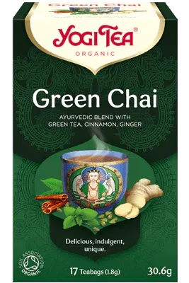 When such popular drinks as green tea and chai come together in one YOGI TEA®, the result is a truly special trinity: the green tea invigorates the body, chai spices soothe the soul, and a new experience fulfils the mind. You will feel it when taking your time to enjoy this unique composition, sweetened and with a little milk or a vegan alternative.