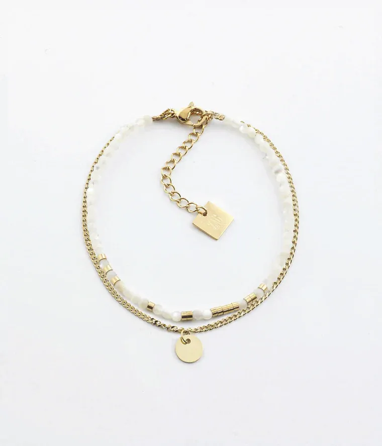 Zag Bijoux – Bracelet Apache Nacre Acier Doré