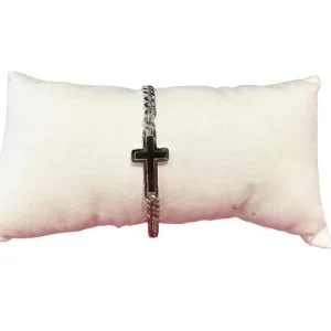 Bracelet en acier inoxydable chaîne « chapelet » sur lequel est attachée une pierre naturelle facettée en forme de trèfle.