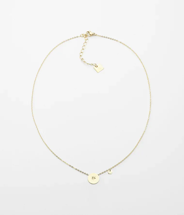 Optez pour ce magnifique collier chaîne sur lequel une petite médaille et une pampille sont accrochées, il s’accordera parfaitement avec toutes vos tenues.