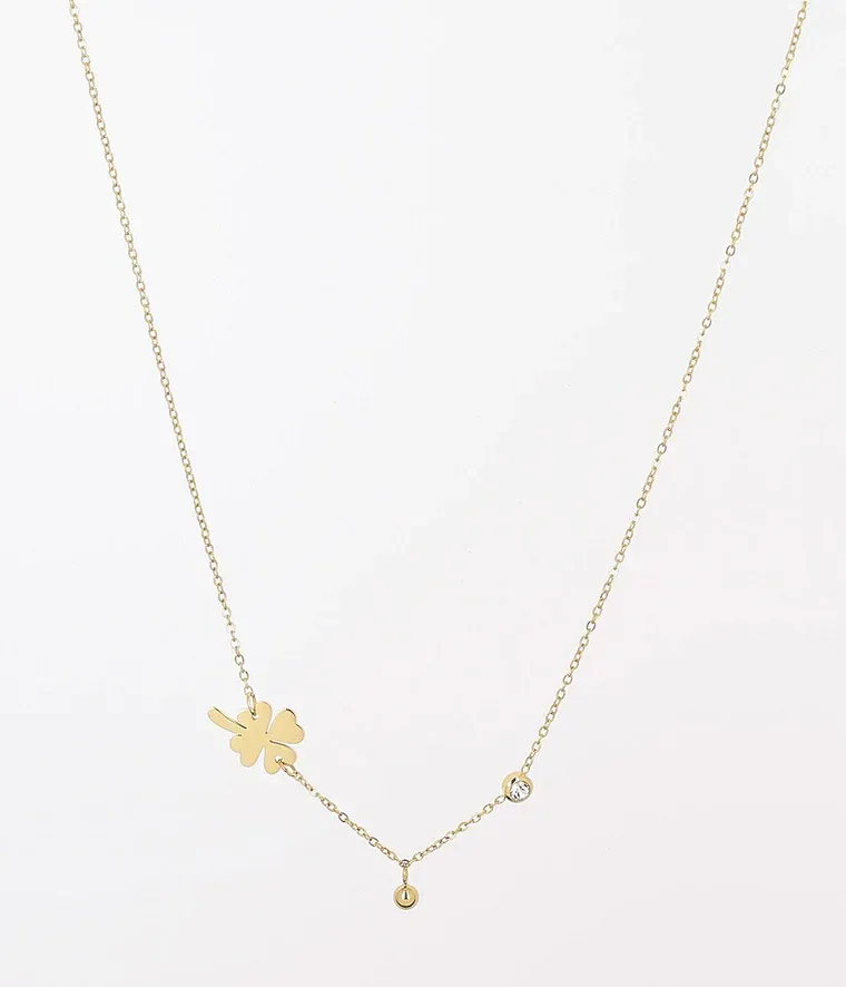 Optez pour ce magnifique collier chaîne sur lequel est attaché un motif de trèfle et un zirconium serti clos, il sublimera votre cou par sa douceur.